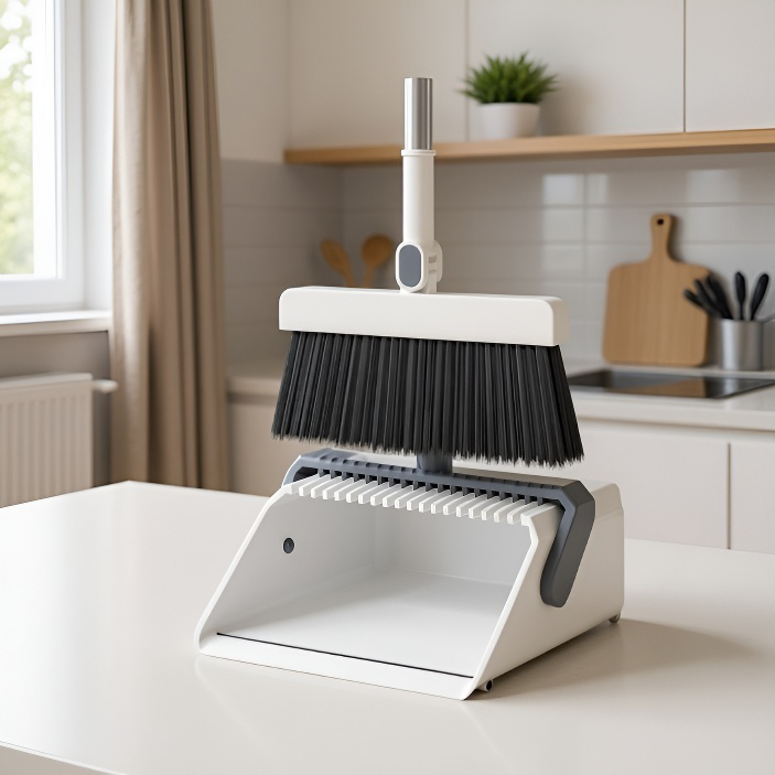 지금 집안 청소를 더 쉽게! 튼튼한 빗자루와 접이식 쓰레받기 세트로 깔끔하게 정리하세요!